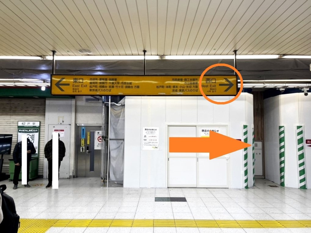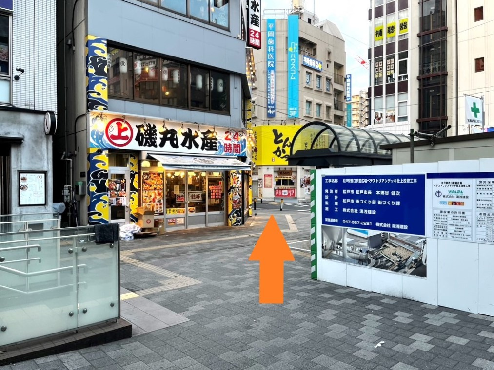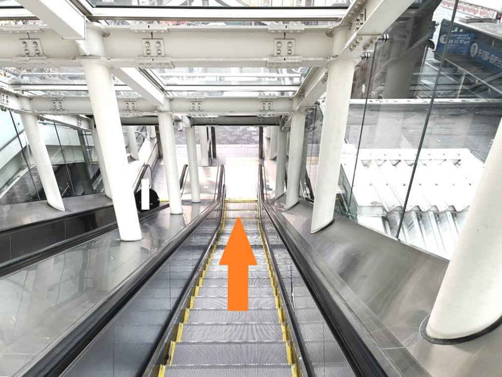 ①松戸駅『 西口 』を出てから斜め左にあるエスカレーターに乗ります。
