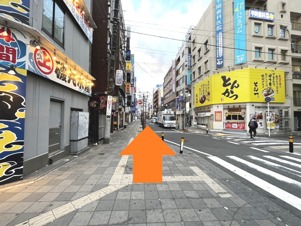 (磯丸水産と言う飲食店を左に曲がります。)
