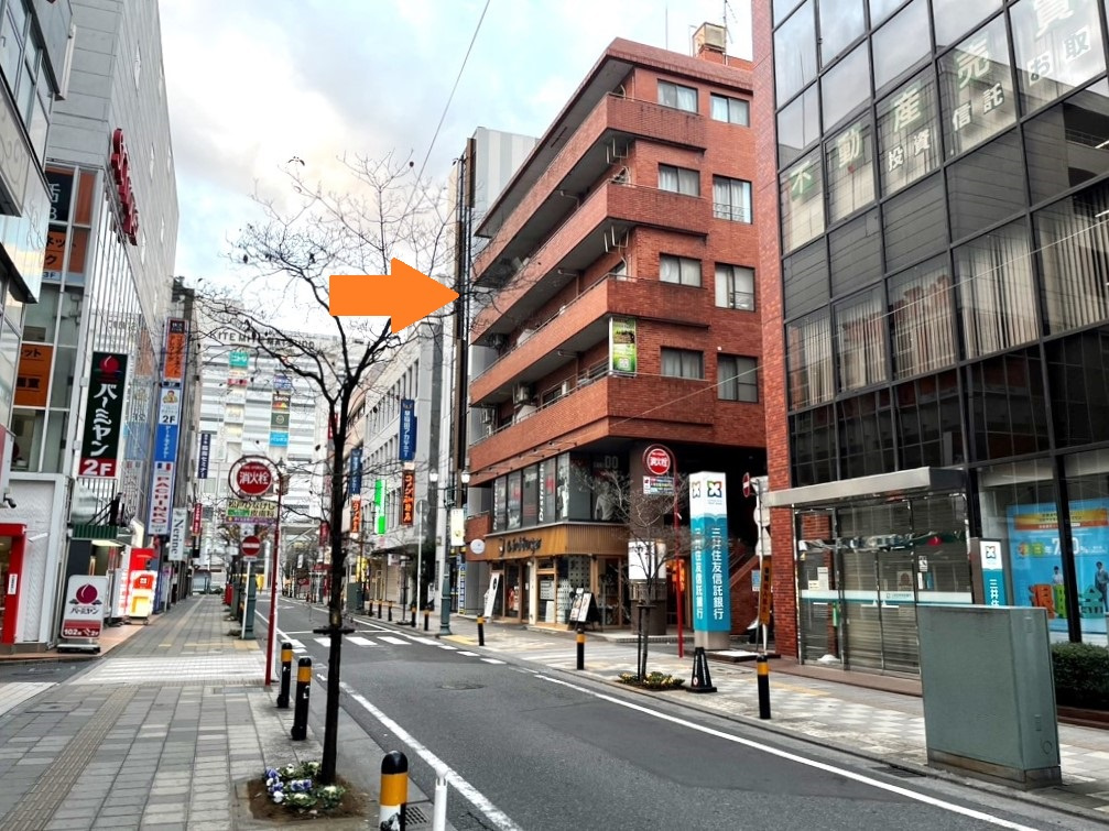 ⑤入口がメイン通りから『三井住友信託銀行』を右に曲がった場所からになります。